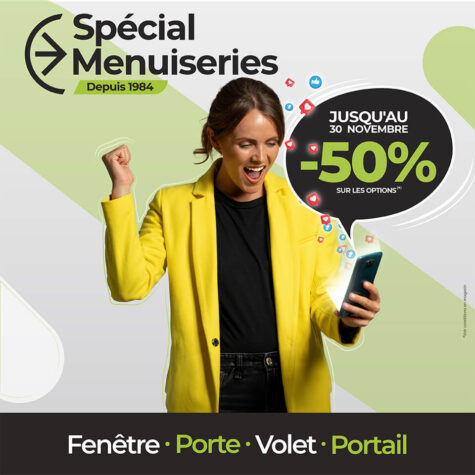 En Novembre chez Spécial Menuiseries, c’est -50% sur les options ! Pour en profitez, cliquer ici.