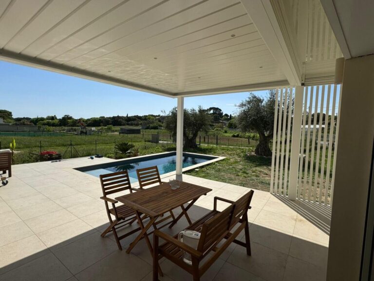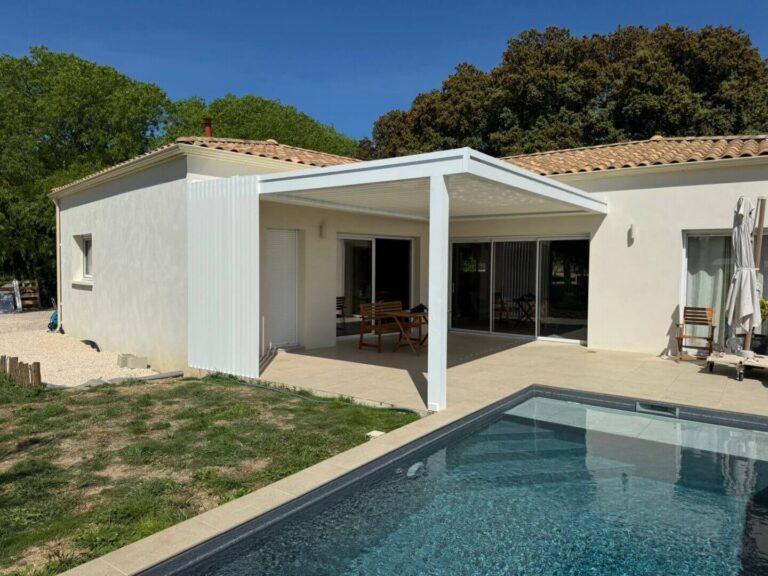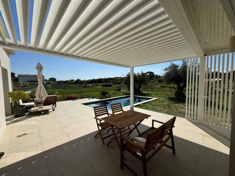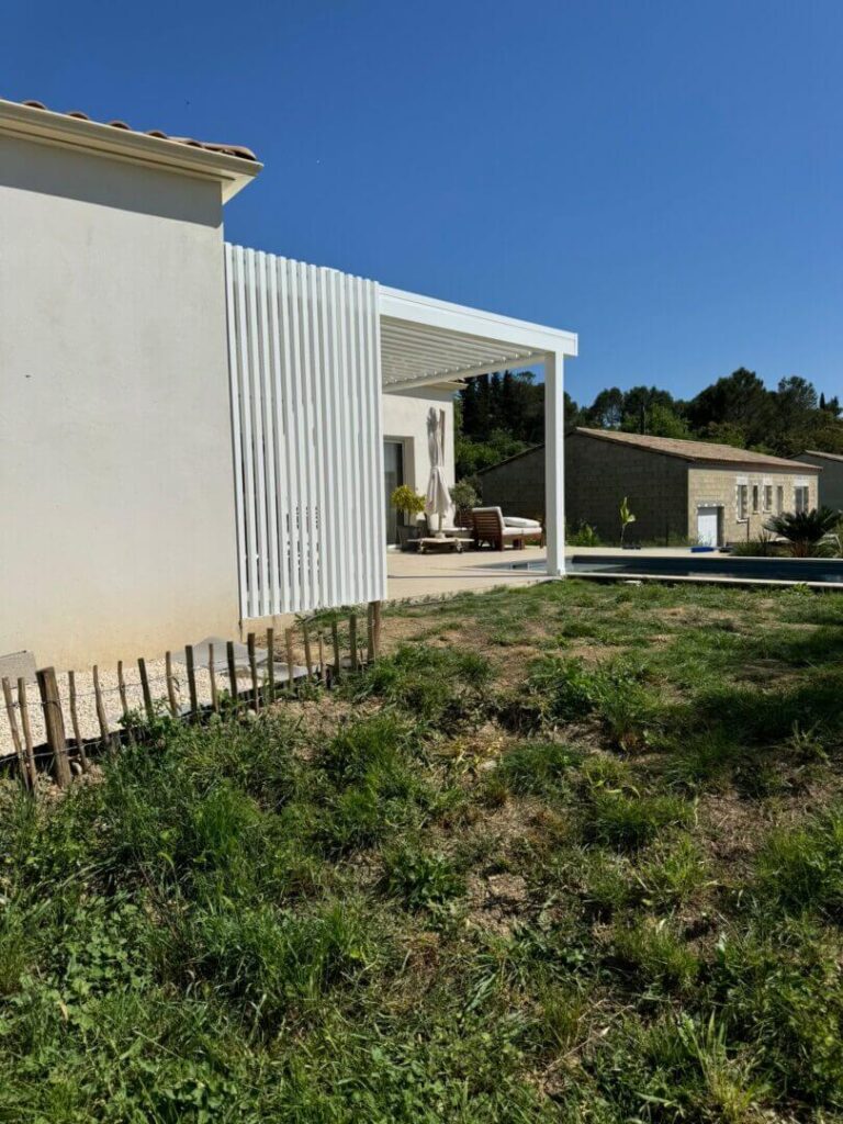 Installation pergola bioclimatique avec lames ajourées à Vauvert